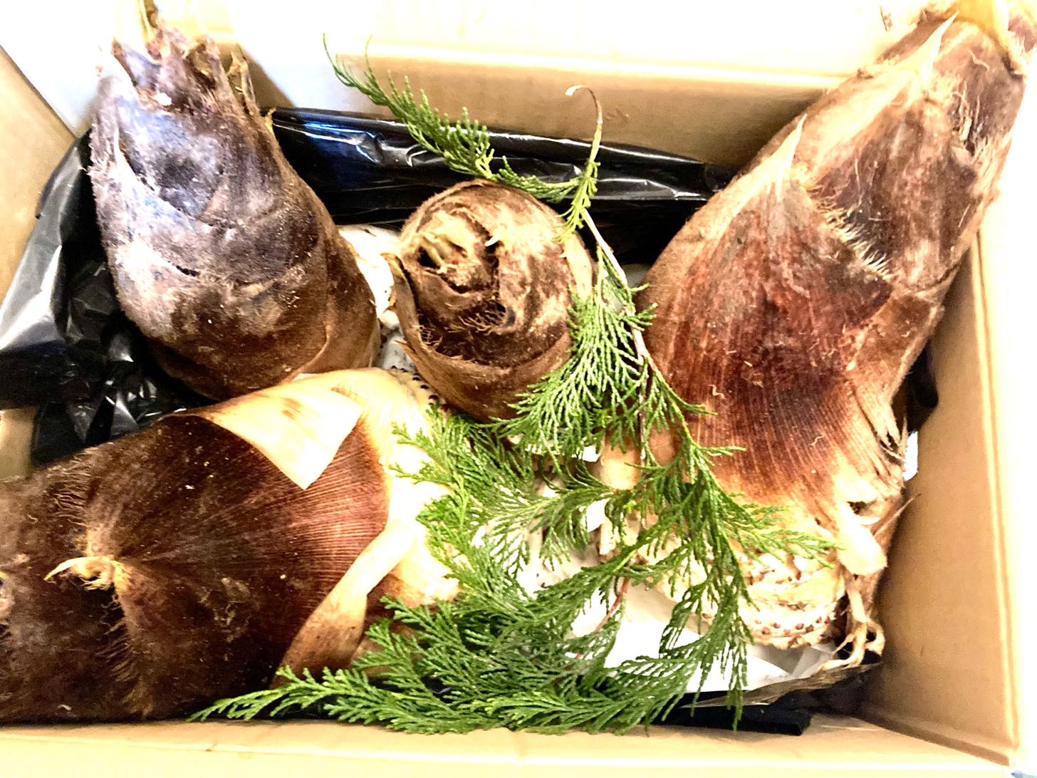 大きな朝取りの→新鮮な.「竹の子が」沢山届きました、8日.午前中に.南部の.内田和行&桂子さんから→自宅の竹藪から→朝.取り立ての.大きな.竹の子が、宅配便で、送られて来ました。