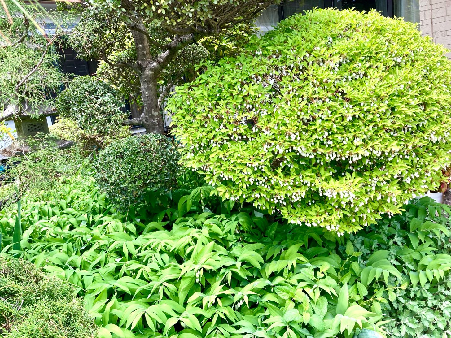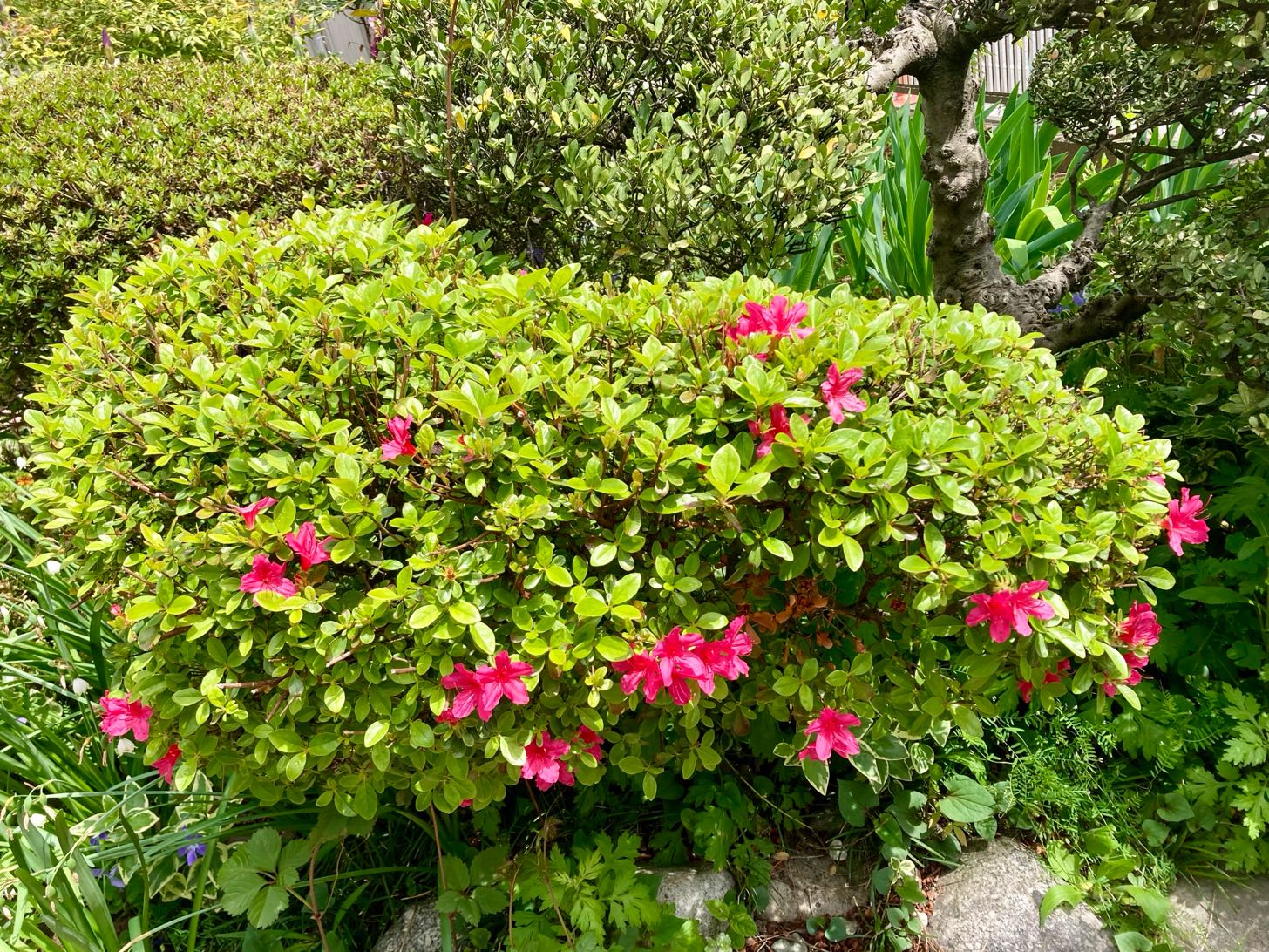 1)「白いボタンの花」.2)スズランの花.3)さつきの花、4)紫の花が.今.満開です.