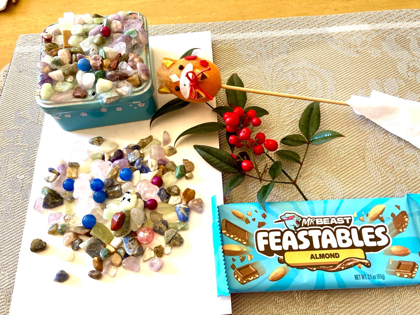先日、勝沼の→「旅日記」に.ママと一緒に.出向き→1000円で→小さい.「宝石を拾って.来たそうです。.お家に、帰って来てから、一人で→☆宝石箱を作り、綺麗に.完成しました、チョコレートは→世界一の.ユーチューバーが作った。「ハワイのチョコレート」だそうです。、ご覧になって下さい。