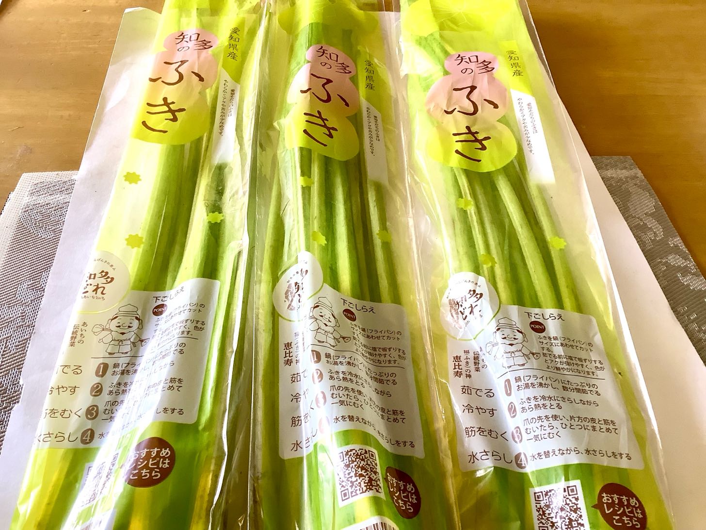 26日.夕方→愛知県知多のふきを3束と、ほうれん草や→きゅうり.椎茸.ぶなシメジ.きゅうり.ミョウガ…ニラを、次女Akikoさんが→買って来て.くれました、早々に、手袋をして、フキの皮を.1時間ほどかけて.剥きました、