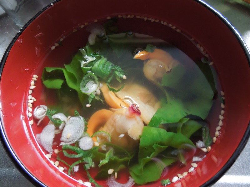 早朝、朝食の準備に、青柳(貝)入りのスープを作りました。
