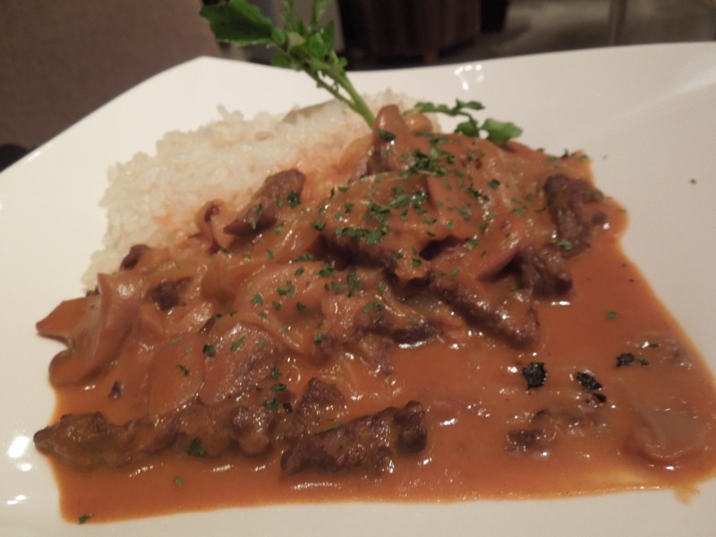 23日.夜、7時.夕食を外に出て食べる事になり、一邦さんと2人で、甲府の、ワールドキッチンへ、ロシアの、有名料理の1つ、生クリームで、まろやかな仕上がりの、「ビーフストロガノフ」 シチュウの優しさに良く似ています。