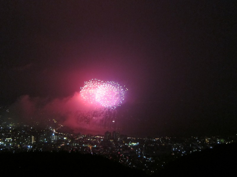 今日の諏訪地区は、夕方から、ドンヨリと雲が、かかって来て、花火大会が、出来るかどうか心配していましたが、瞬く間に、真っ黒い雲が、諏訪湖を、覆ってしまい、雷と、稲妻で、中央道の塩尻インターから、塩尻北インターまで、通行止めになり、10年間、花火大会を見に来ているが、今までに初めてだと、日本連合警備の保坂社長が言っていました。
