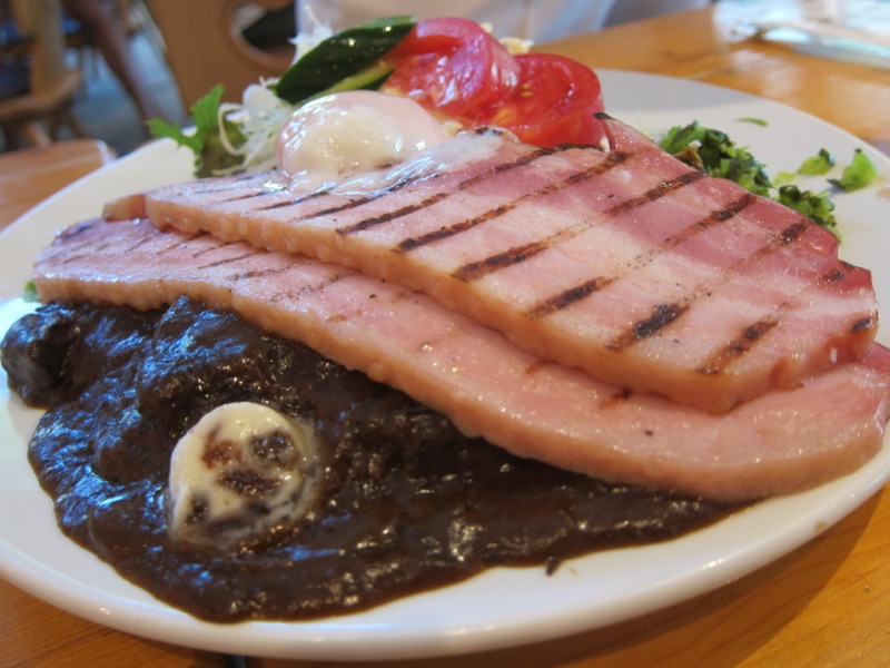 千葉県へ嫁いだ長女が、盆で里帰りしていましたので、一緒に萌木の村のカレーを食べに行きました。写真は、ベーコンの「ダブルカレー」です。