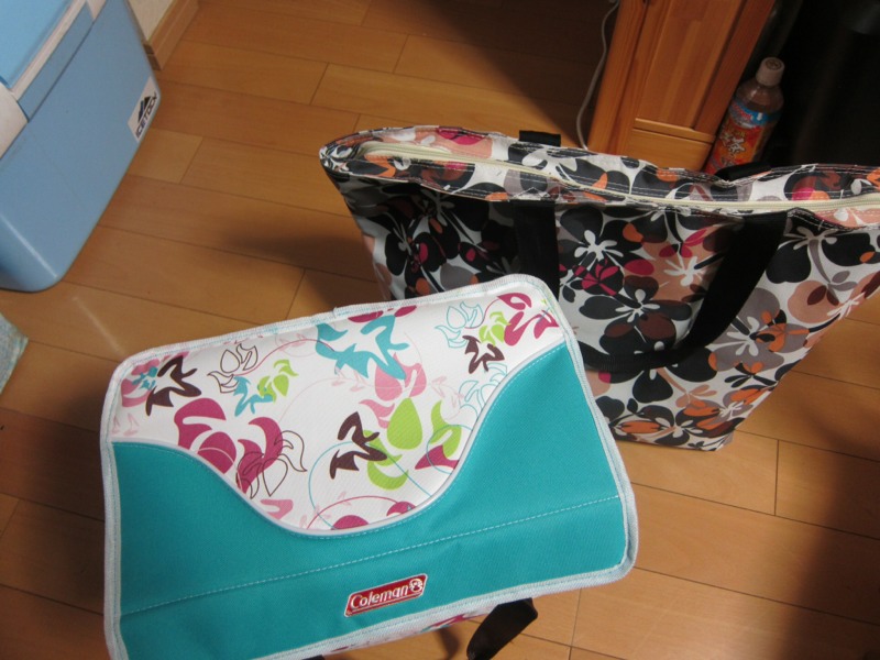 7月に入ってから、クーラーボックスのプレゼントは、5人目です。ブルーと、色模様のクーラーボックスは、今日、Akiko'Tojoから、いただきました。後側の花模様は、塩沢梅子さんのプレゼントです、