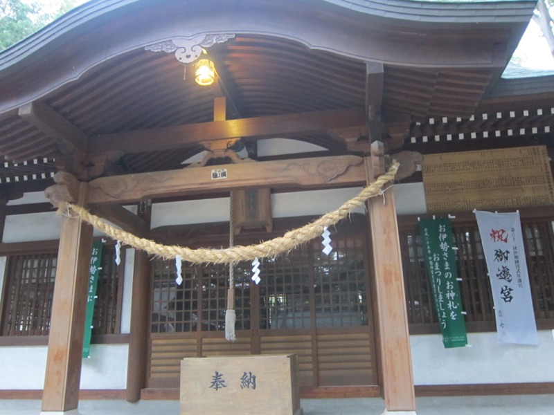 神社には、20年に一度の、「伊勢神宮 式年祭」お白石の、お神札を お祭りしましょうと、書かれた旗が、吊るされていました。