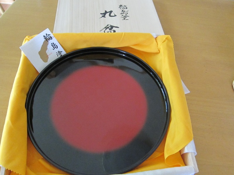 今朝、輪島塗りの、日本を代表する工芸品として、名高い評価を受けている、伝統ある漆器、輪島塗の丸盆をいただきました。