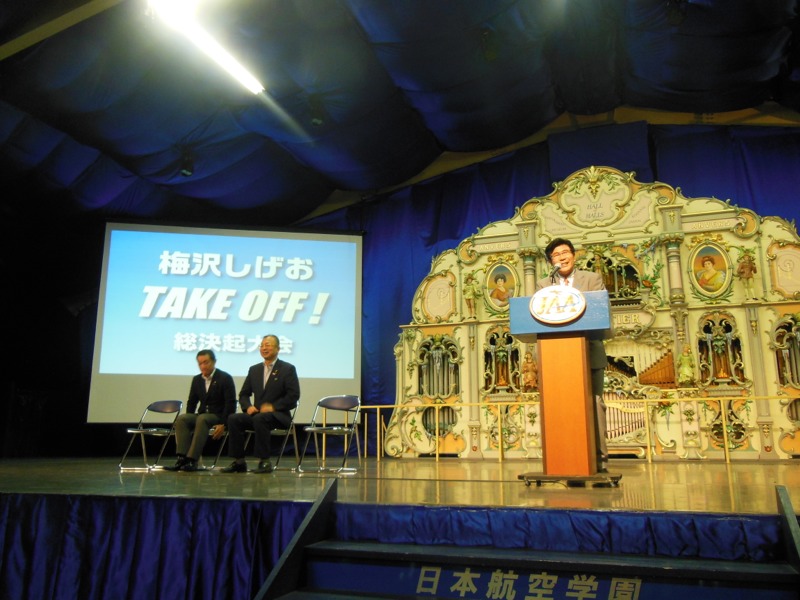 梅沢しげお先生の、総決起大会は6月16日、日曜日、午後6時から、日本航空学園のJ_shipホールにおいて行われます。