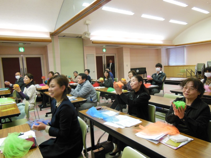 写真は、音楽療法士の、中 なほみ様のご指導で、「花は咲く」の、歌をみんなで歌っているところです。
