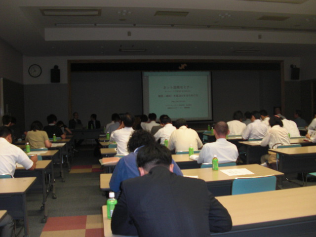 28日、夜、甲府商工会議所5階に於いて、ネット活用セミナーを開催している様子です。会場には、若い人が多かったけれど「90人」、私も、その仲間入りができた事が、うれしく思いました。7月28日 撮影 東條初恵