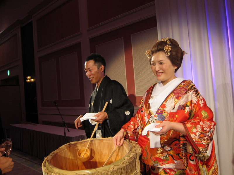 17日、午後3時から、塩谷亮太さんと、赤坂咲子さんの結婚披露宴が、フルーツの富士屋ホテルで行われました。新郎新婦の初めてのお仕事は、鏡開きでしたが、お嫁さんの力の方が強くて、お酒が、写真を撮っていた人達の、洋服にお酒が飛び散り、明るくて、元気の良さが、うかがえます。幸せそうですね。10月17日 撮影 東條初恵