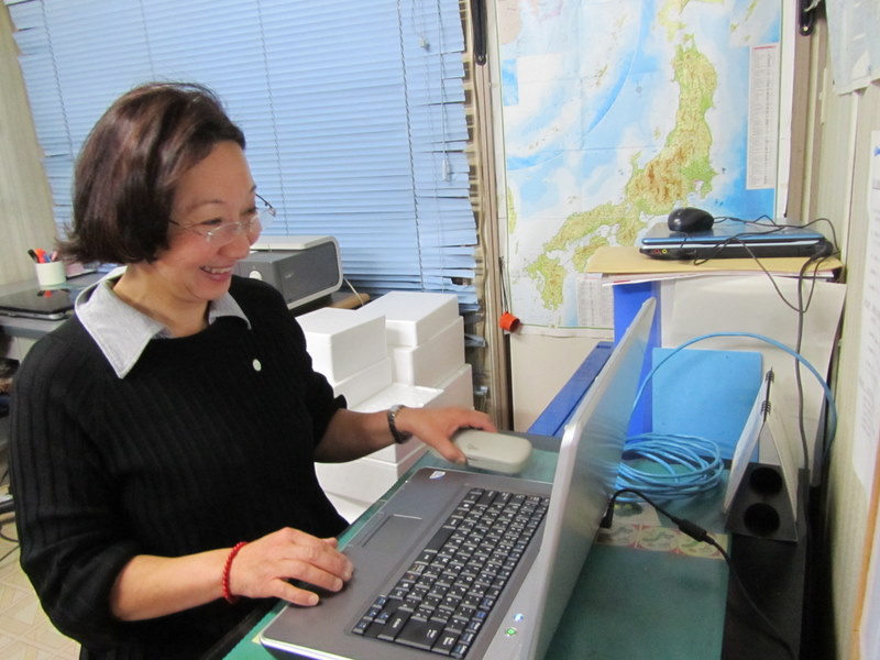 17日、夜6時30分より、開催したパソコン教室に、急用があって、少し、遅くなってからの出席の、〔有〕テラワンの専務、内藤誠子さんです。遅く来たのに、ニコニコ笑いながら、余裕たっぷりですね。ご立派、、、。上手にブログが書けていましたね。スゴイ、スゴイ、、。3月17日 撮影 東條初恵