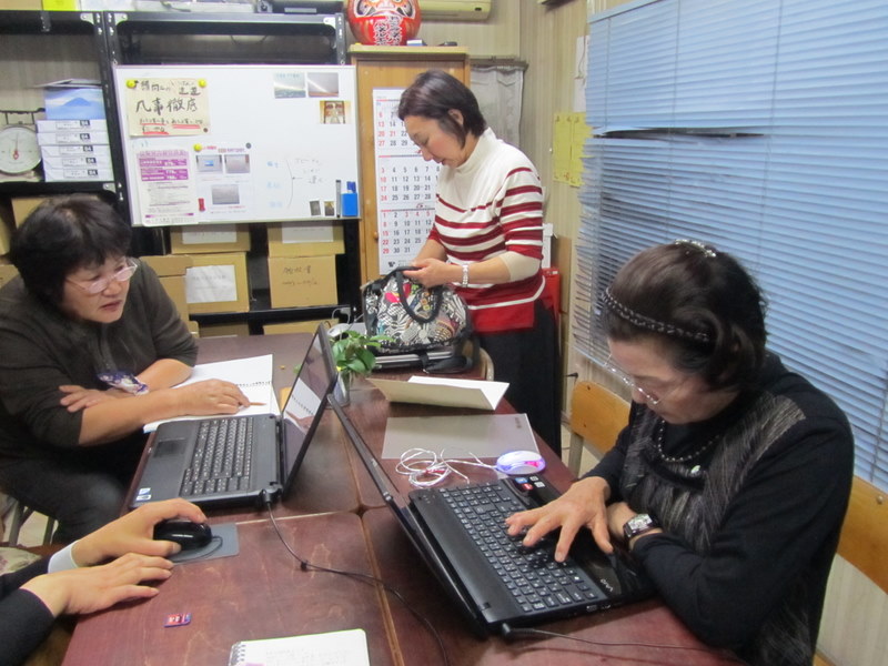 26日、夜7時から、やまなし女性異業種の会では、まだ完璧に、ブログの書き込みが、出来ない会員を対象に、シラネパツクで、勉強会を行いました。みんなが、スゴク熱心に取り組んでいました。右手前が、内藤初三さん〔元看護婦長〕ですが、なんとなく、おぼつかない手つきですが、しっかりした写真を、3枚も取り組んで、素晴らしいブログを完成させました。立っている人は、内藤誠子さんですが、「ゆっくり組み」の人を指導する事が出来て、ほぼ完了といったところです。5月27日 撮影 東條初恵