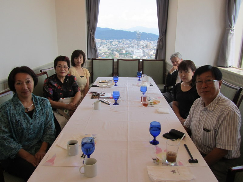 9日、午前11時30分より、甲府富士屋ホテルに於いて、さつき会8月定例会を開催しました。今月は、4人が欠席でしたので、出席者は6名でした。甲府市議会議員の、金丸さぶろう先生を囲んで、現在の長引く円高問題について、10年くらい前から、予想をしていた人がいたと言う話や、日本の政治は、トップの力不足で、世界からバカにされているんではないかと、国際的な話になりました。8月9日 撮影 東條初恵