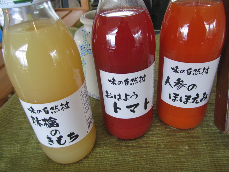 車山高原の頂上に行く途中、リフトに載って中腹のレストランで、ジュースを飲んで来ました、帰りにお土産を、3本買って来て、冷やして飲んでみました。さすが本物です、濃厚のジュースに、ビックリしました、最近は本物に、中々出会えませんが、1) おはようトマト。2) 人参のほほえみ 3) 林檎のきもち、350ミリリットルで、1本650円でした。 8月3日 撮影 東條初恵