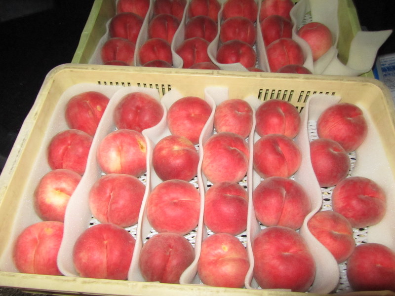 4日、夜7時30分、一宮の山梨青果に、急ぎの段ボールを届けに行って来ました。古屋社長が、私の着くのを待っていて、桃を2箱、お土産に用意しておいて下さいました。この桃の名前は、「夏子」だそうです。美味しくて、とても見事な桃でした。有難うございました。今晩、次女が東京に、「夏子」を、沢山持って車で帰りました。8月4日 撮影 東條初恵