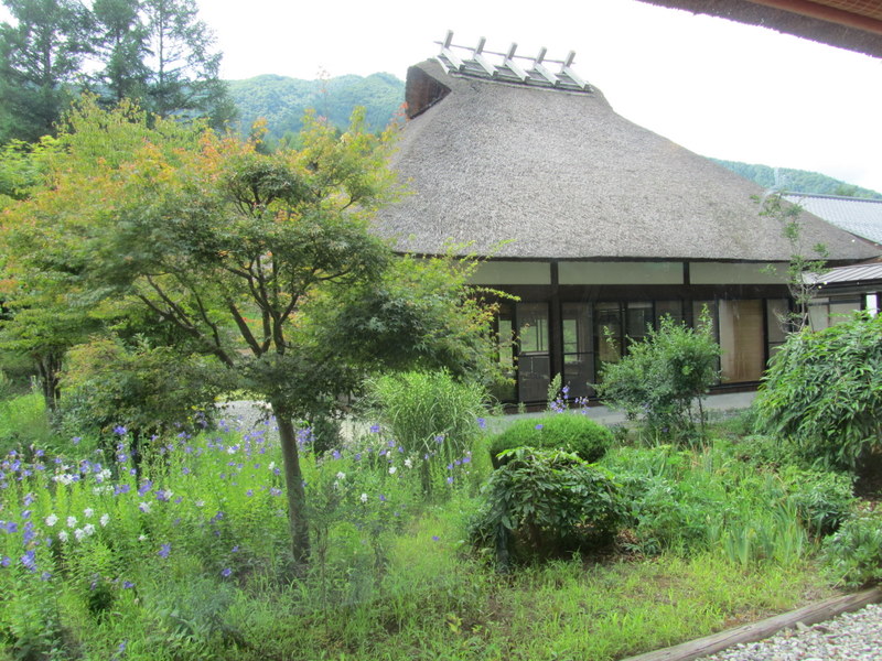 11日、長野県辰野市辰野町横川にある、「かやぶきの館」の、隣には、「かやぶきのレストラン」 があります。庭には紫色と白色のキキョウが自然の姿で咲いていました。綺麗な空気と、美しい自然に包まれた、豊かに満ちた、食と暮らしの体験が出来ます。お泊りは、のんびりと縁側でくつろげるそうです。4~6人部屋が、10部屋あるそうです。どこか魅力を感じます。8月12日 撮影 東條初恵