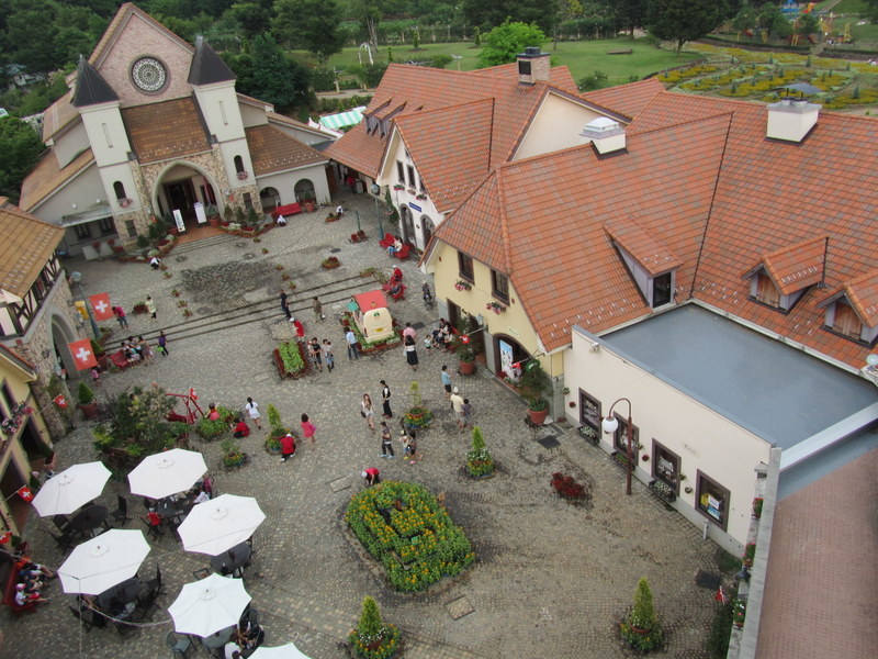 お盆の15日、花と星空のテーマビレッジ「ハイジの村」に、初めて行って来ました。中には、ハイジの村の教会や、ハイジのテーマ館展望台、街角のレストラン、バラの温室、アルムの山小屋、花市場他、広い土地の中にいっぱいのステージがありました。8月17日 撮影 東條初恵
