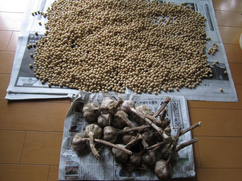 18日、午後、身延町一色に住んでいた、ジット社長、奥様の実家の、お父様から、沢山の「曙大豆」と、「ニンニク」を、いただきました。「曙の大豆」は、身延の、この土地でしか採れなくて、とっても美味しい大豆す、ゆでて、サラダにしても、大きくてやわらかい美味しい大豆です、こんなに沢山いただきましたので、これから、楽しみに、大切にいただきたいと思っています。ありがとうございました、感謝しています。8月19日 撮影 東條初恵