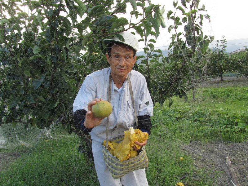 東條ファームの園長さん、なかなか型にはまっていますね、我が後輩として褒めてあげます、いい梨作りに精進してください、