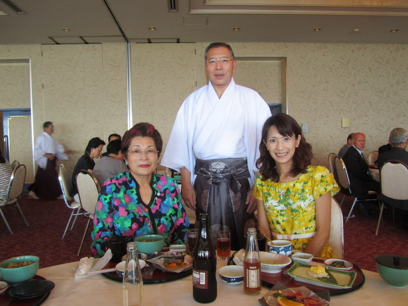 25日、12時30分より、近くの海の見える、大きなホテル〔大洗シーサイドホテル〕で、例大祭直会を行いました。飯塚 重宮司がお酌して下さいましたので、東京に住む次女(東條亜紀子)と一緒に、記念の写真を撮っていただきました。8月25日 「撮影は隣の席にいた、水戸東照宮の宮司さんです」 東條初恵