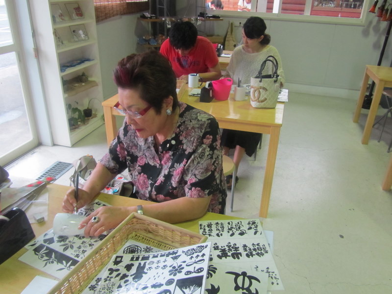 5日、河口湖方面に集金に行って来ました、集金が手間取っていましたので、途中「クラフトパーク」に、よって、グラスのカップに彫刻をして、チョツトの間、楽しんで来ました。写真は、コップに自分の思う絵を描いて、貼り付けてから、真剣に彫刻をしている姿です。後ろの人達は、カップルです。楽しそうですね。9月6日 「撮影は、赤い洋服の人」 東條v初恵