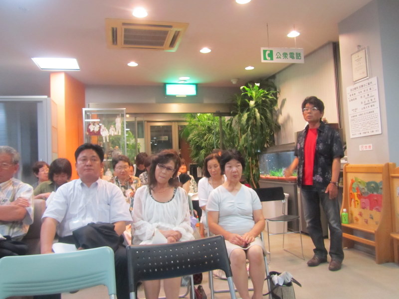 10日、夜7時より、甲斐市の田辺眼科に於いて、第2回、「小野次郎さんを囲んで」~県民の声を国会へ~を開催しました。開場には、座りきれない位の大勢の人達に参加していただきました。写真、立ってお話をしている人は、南アルプス市の、三木仁さんです。福島県人会の事務局長の鈴木保彦さんに、俺たちは、どんなことを協力すればいいのか、教えてください、国民がおとなしすぎる、国民が勇気をもって、国会へデモ隊として、旗を立てていく時は、必ず声を掛けてください、どんなことでも協力します、と、力強い、発言をいただきました。9月11日 撮影 東條初恵