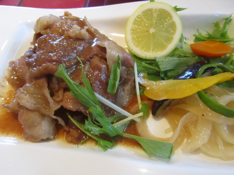 8日、テーラー石川の、石川君江さんと、2人で「ダービーハット」さんに昼食に行ってきました。今日のお昼のランチは、ワインの豚肉に、しょうが焼でした。この他にも、サラダと、肉ジャガ 、コーヒー、フルーツなど、いっぱい出て、たったの1000円でした、満足でした。9月8日 撮影 東條初恵