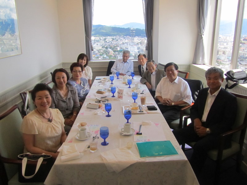 6日、午前11時30分~13時30分間での2時間、甲府富士屋ホテルの14階に於いて、甲府市会議員の「金丸さぶろう先生」を、囲んで「さつき会」9月の定例会が開催されました。今回は、天災の起きる可能性についてや、甲府市立病院の問題や、県連自民党問題や、県民文化祭の問題や、リニアの駅問題や、普天間の問題や、野田新政権の問題等、短い時間に、活発な意見が出ました。出席者は9人でした。9月6日 「撮影は富士屋ホテルの社員」 東條初恵/p>