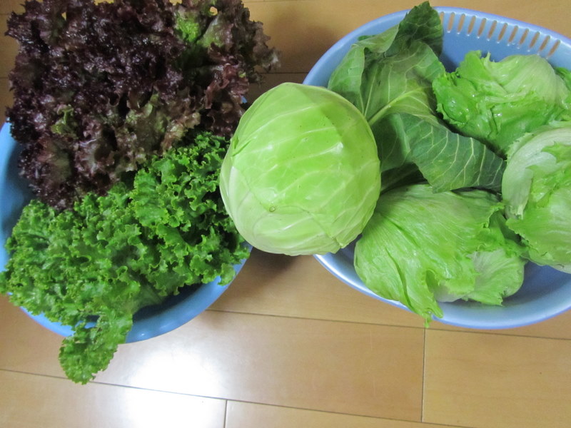 とてもすてきなきゃべつたちです。あたたかい人に囲まれて、色もつやも最高です。なんだか心が温かくなってきました。東條様のほっとな心が伝染されていくのですね。