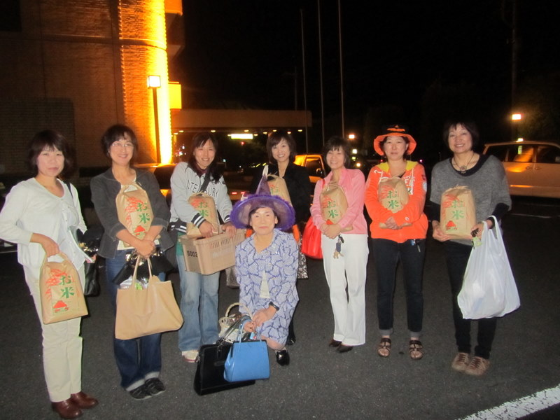 6日、夜9時、やまなし女性異業種の会の役員会が終わり、ピュア総合会館の前で、内藤初三さんが、役員全員に、新米を分けてくださいました。みんな、大喜びで、新米を抱えて写真を撮りました。役員の嬉しそうな顔を、ご覧になってください。10月7日 撮影 東條初恵