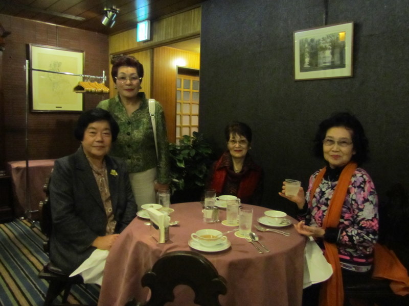 29日、朝9時に会社を出て、東京局間連、青年部、女性部合同の講演会が、午後1時30分より、東商ホールで開催されました。山梨県からは、「甲府法人会女性部会長」の、飯島敏子さん、「テーラー石川」の、石川君江さん、「ブルーベリーファーム」の、里吉和子さん、「ダイタ」の、中込まさえさんと、東京から「sokoneyaジュエリー」の、東條亜紀子さんと、私の6人で参加しました。山梨から初めて6人も参加してくれたと、東京局間連女性部、白川よし子部長に大変喜ばれました。写真は、東京会館でお昼のお食事をしている所です。10月28日 撮影 東條初恵