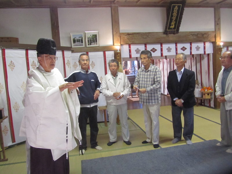1日、午前9時より、南アルプス市、豊諏訪神社に出向き、主人と一緒に、11月、月初めのお参りをして来ました。写真は、お参りに訪れた地域の皆さんが、一人、一人、竹埜宮司さんから、榊を渡され今月の家内安全を祈願し、お祓いをしていただいている様子です。11月1日 撮影 東條初恵