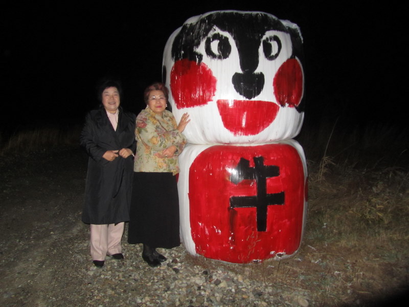 26日、夜9時30分、満天の星を見に、長野県、野辺山に行ってきました。写真のダルマさんは、飼料だそうです。気温は氷点下です。ほほがしびれる様な痛さでした。11月27日 「撮影は舩木上次さんです」 東條初恵