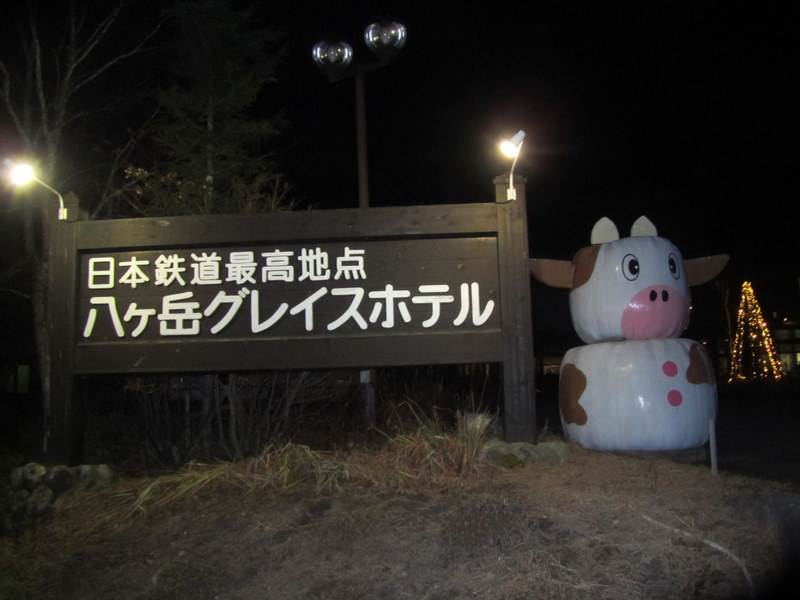 26日、夜9時、日本の鉄道の標高最高地点、野辺山に、舩木上次社長のご案内で、武田信玄の戦道を通って、暗い中をご案内していただきました。写真を見ていただいてお解りだと思いますが、外は、零度以下の寒さで、写真を撮る時も、手がピリピリしていました。1月27日 撮影 東條初恵