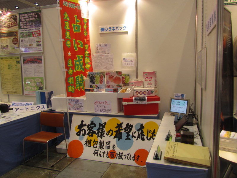 17日~19日迄、アイメッセに於いて、山梨テクノフェアーが開催されています。シラネパックでも、ここ数年連続でワンブースへ、商品の展示がしてありますので、ご都合がついたら、見に行ってください。若い人達のアイディアは、素晴らしいものがあります。11月17日 撮影 東條初恵