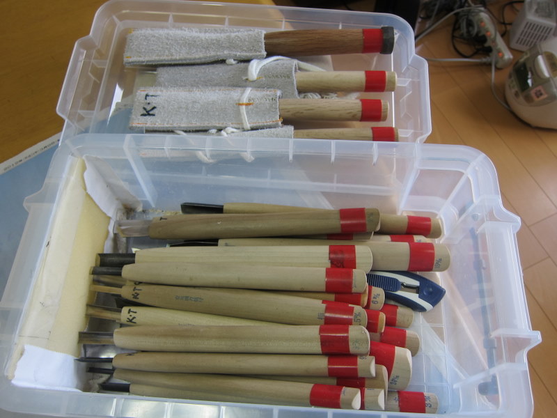 彫刻とうですね。同じ形でも幅や長さの違い角度の違いなどよりきれいに仕上げるためにはやはりたくさんの種類の道具が必要になりますよね。道具の手入れも大変ですね。3月10日誠子