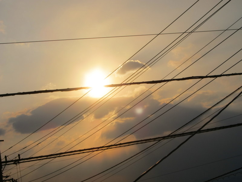 16日。朝6時20分、電線の中からの日の出です。この電線が、全部、地下にもぐってしまったら、素晴らしい景色に、なるんでしょうが、残念です。3月16日 撮影 東條初恵