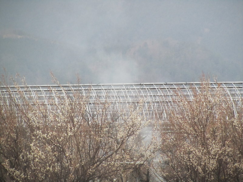 車で白根町の梅の花が咲いている場所を通ったとき発見しました。満開のこところは、花弁が大きく茶色っぽくなるので遠くから見ると少しピンク色に見え、咲き始めのところは花弁がまだ緑なの色で薄黄緑色に見れるのですよ。とてもきれいでした。24日誠子