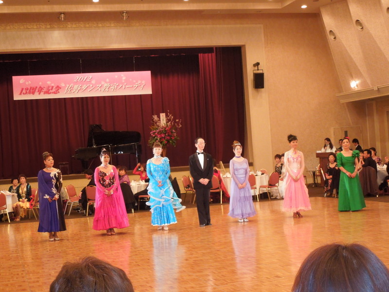 1日、午後4時50分より、佐野ダンス教室の13周年記念パーティが、アピオに於いて開催されました。我がホープ、田辺眼科の田辺文子さんも、ドレスを何回も着替えて、出場しました。写真、一番右でグリーンのドレスを着ています。ご覧になって下さい。4月1日 撮影 東條初恵