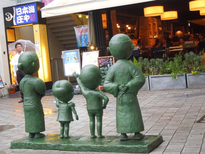 16日.デブ女の、早朝ウォーキングは、雨の為、、午後から、東京の、サザエさんの、家族が住んでいた街を、オーケースーパー迄の、道のりを、往復、東條亜紀子さんと一緒に、小雨のなかを、傘をさしながら歩きました。サザエさんの家族のバックスタイルを、ご覧になって下さい。6月16日.撮影 東條初恵