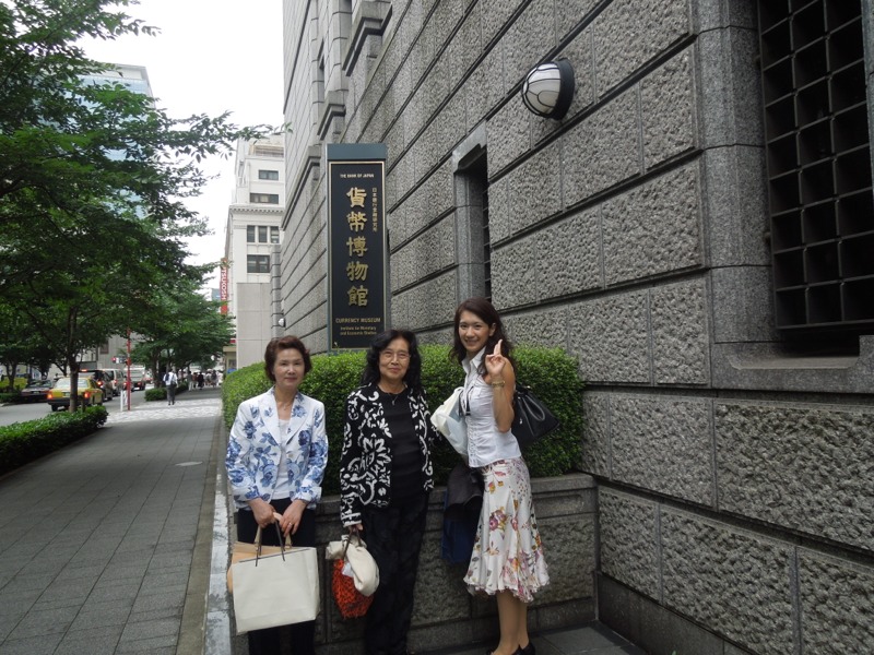 3日.午前、東京の日本橋にある、「日本銀行」貨幣博物館を見学しました。この博物館は我が国の、古代から現在までの様々な貨幣や、貨幣に関する資料、海外の、珍しい貨幣などを集め、研究してきたそうです。写真が山梨県から出席して下さったメンバーです。左からダイタの、中込まさえ社長と、甲府法人会女性部、飯島敏子会長(中央)です。右端は、東京から出席した東條亜紀子さんです。7月4日.撮影 東條初恵