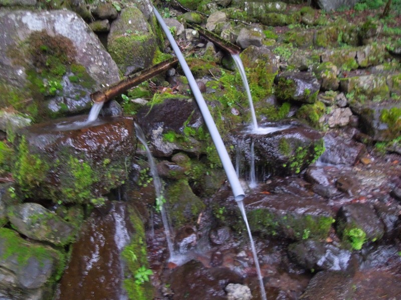 17日.午後6時、北杜市清里にある、「弘法水の湧き水」を、取りに行って来ました、高い山の沢から、湧水が滝の様に、流れ落ちています。