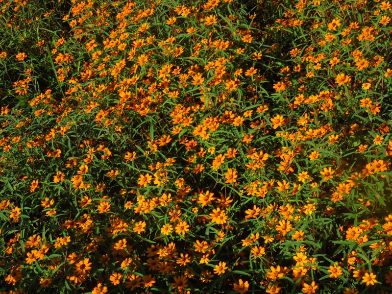15日.早朝ウォーキングです。もう、間もなくお彼岸と言うのに、まだ、こんなに、小さな「ひまわり」が、いっぱい、満開に咲いていました。ご覧になってください。9月15日.撮影 東條初恵