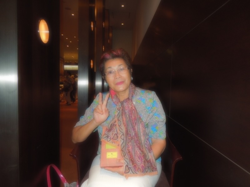 5日.北海道から帰って来た、akiko.Tojoさんと、新橋演舞場で待ち合わせをしました。いちばん先に、私に手渡された物は、飛行機の中で買ってきたと言う、イタリア製で、エトロの高級なマフラーでした。早々に、私の首に巻いて写真を撮ってくれましたので、ご覧になってください。9月5日.撮影 東條初恵