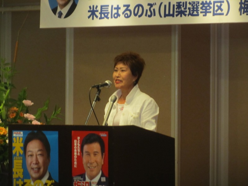 13日.午前10時より.アピオ甲府に於いて、「みんなの党を支援する」山梨県女性部.総決起集会が開催されました。初めの.ご挨拶は、米長事務所.女性部長.野村洋子さんです。トップバッターにふさわしい、キリッとした明瞭な、爽やかな、ご挨拶でした。さすがです。ご覧になってください。7月14日.撮影 東條初恵