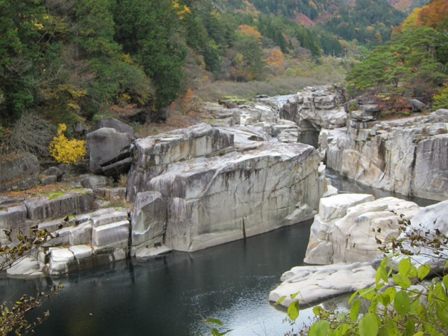 12日.「みんなの党」山梨県女性部は、岐阜県中津川市の、ちこり村から「長野県の寝覚めの床」の見学をしました。(写真)「寝覚めの床は」国の名勝に、指定されています。水は、エメラルドグリーンです。寝覚ノ床の中央にある、「浦島堂」は、浦島太郎が竜宮城で、乙姫様にもらって来た、「玉手箱」を持って帰きたが、700年も前のことですので、知人もおらず、竜宮城での美しさを思い出し、この場所で、玉手箱を開いたら、白髪のおじいさんに、なってしまい、この里を、岩が床の様に、並んでいたので「寝覚めの床」と、名前が付いたと言う、伝説があります。11月14日.撮影 東條初恵