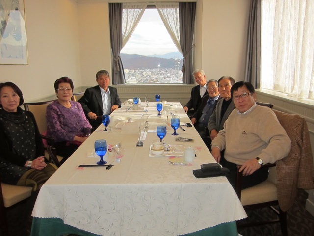 11日.午前11時30分より、甲府 富士屋ホテルに於いて「甲府市議」金丸さぶろう氏を囲んで、さつき会「12月の定例会」が、開催されました。今回の、テーマは、リニアモーターカーが、山梨に及ぼす効果や、今、騒がれている「特定秘密保護法案」が、あっという間に、国会で決まってしまったが、夏の、参議院選挙の、公約にも、「特定秘密保護法案」は、上がっていなかった、なで、そんなに急ぐのか、急ぐ理由が分からない、国民を無視している等や、「みんなの党」の、分裂などの、話も出ました。12月11日.撮影 東條初恵