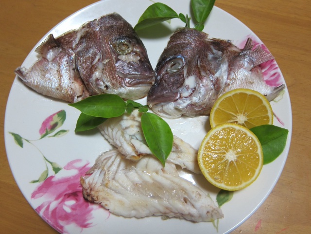 Top > 「鯛の兜焼き」と、自家菜園の、「カボス」です。
