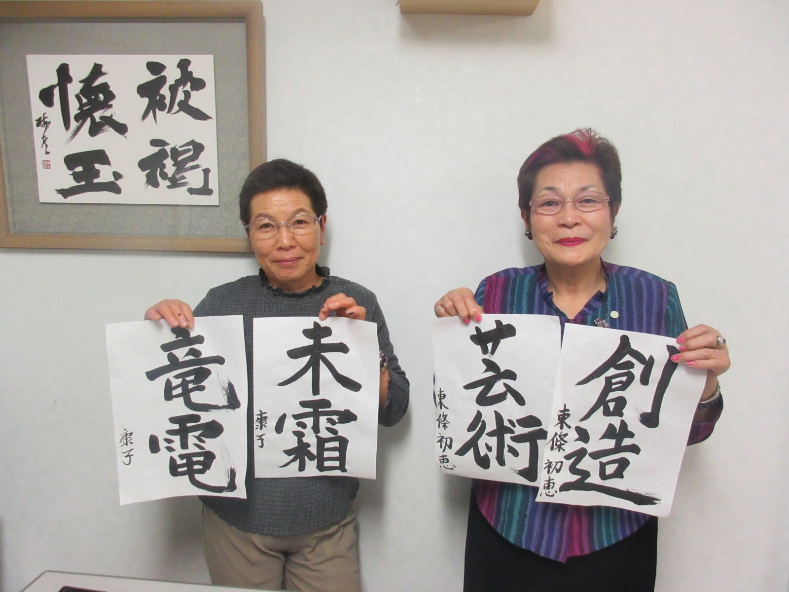 9日.夜7時30分より、ふうえん書道会、第5回目の作品です。思うように、うまく書けません。お友達の秋山さんは、明日の夜、山梨県出身のお相撲の力士、竜電と一緒に、お食事をしますので、竜電にプレゼントをしようと書いたものです。「ふうえん書道会」の、安田玄遠先生からも、「竜電」に、力強い力士になって欲しいと、力強い流れるような勢いの字を、プレゼントとして、上手に書いてくれました。ご覧になってください10月9日.撮影 東條初恵